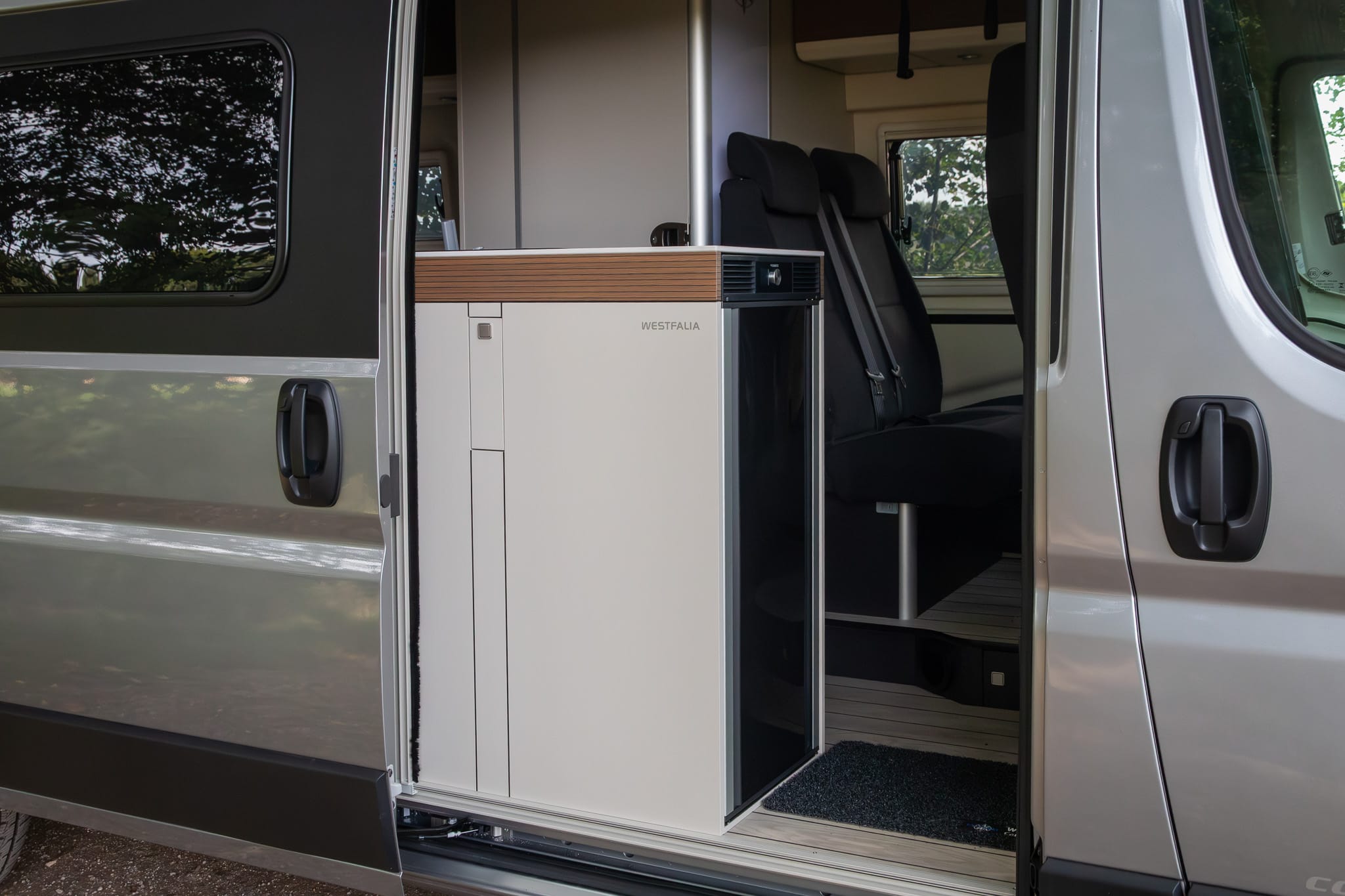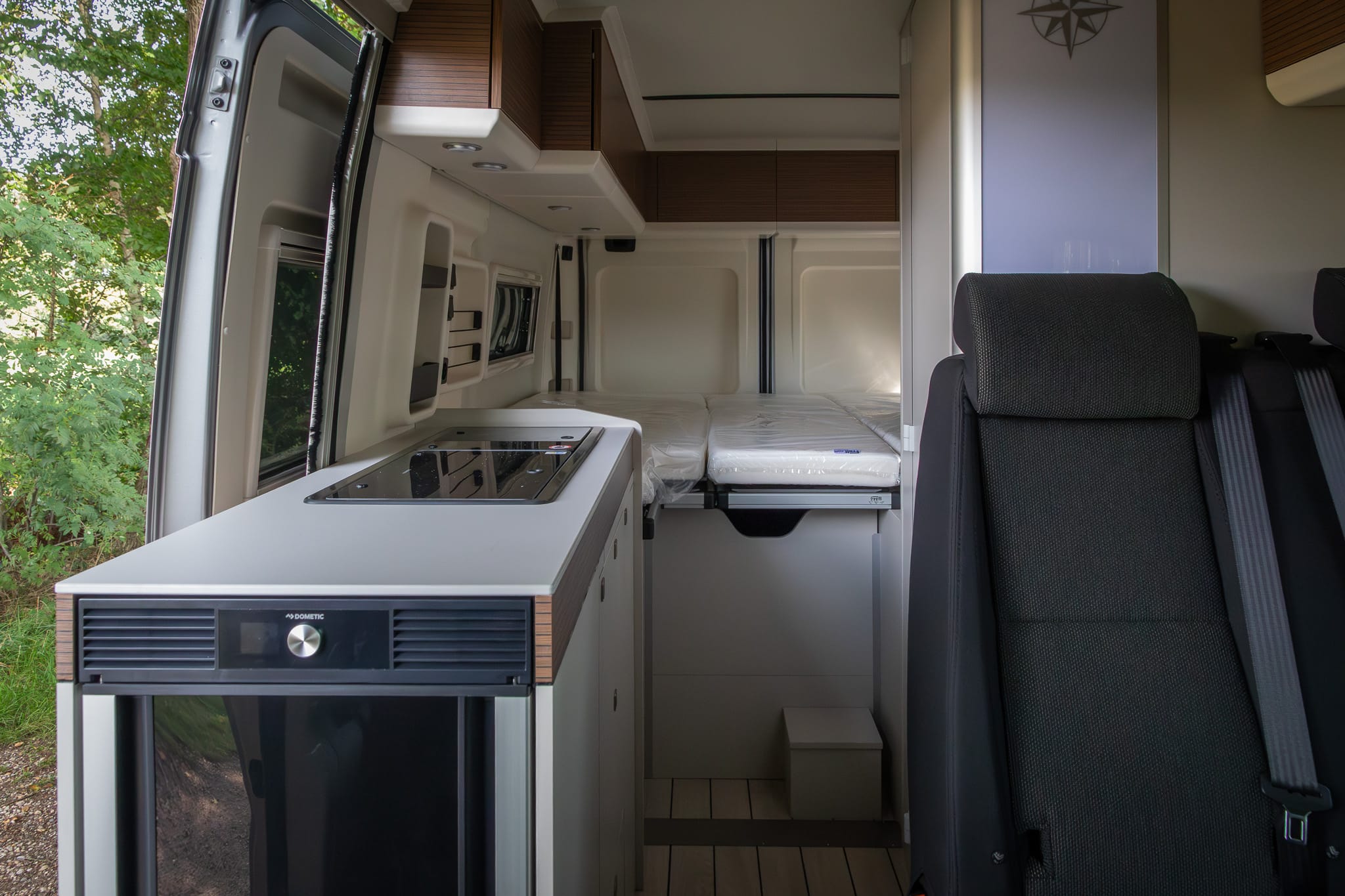 De dieselverwarming en de 95 liter compressorkoelkast functioneren volledig zelfstandig, wat deze buscamper uitermate geschikt maakt voor vrij kamperen. De keuken is zowel van binnen als van buiten goed bereikbaar. Dankzij de variabele opbergruimte is er voldoende plaats voor fietsen en andere reisuitrusting.