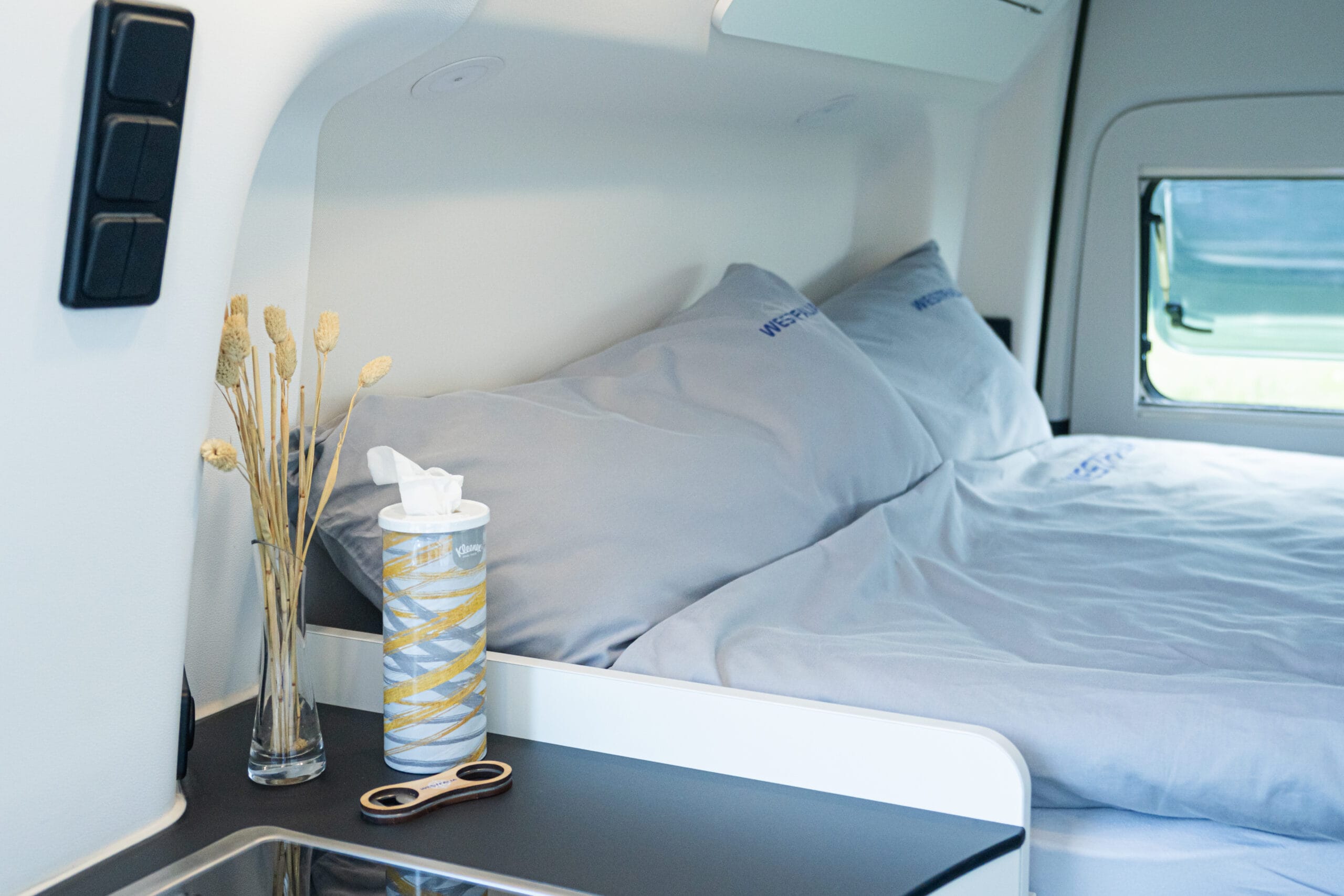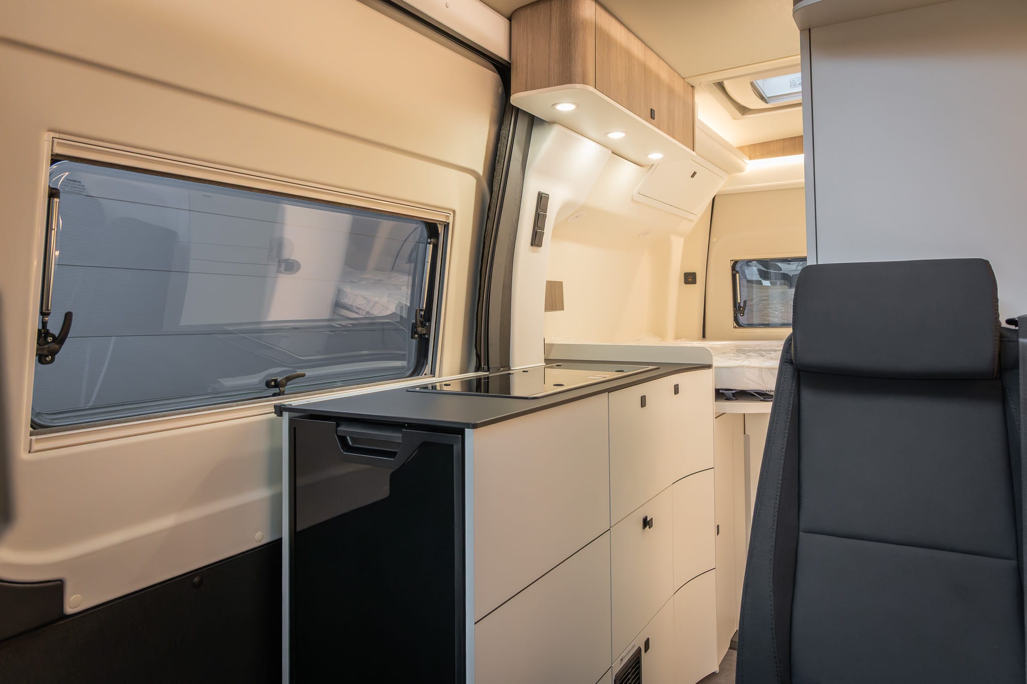 Met een dwars geplaats bed van 2,09 meter lang en ruim 1,40 meter breed maakt de James Cook uniek. Geen enkele camper onder de zes meter biedt zoveel slaapcomfort.