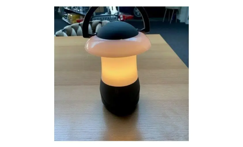 Een compacte en sfeervolle tafellantaarn. Verzorgt een prettig licht door high power LED’s met een warme lichtkleur en de witte matte kap. De lamp is te gebruiken in drie lichtstanden: 30%, 60% en 100%. Voorzien van een stroeve rubberised behuizing voor meer grip en een inklapbaar hengsel. Werkt op 4x AA batterijen (niet inbegrepen). Brandduur: 80-11 uur. Lichtopbrengst: 13-120 lumen.