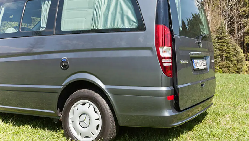 AIR-SAFE is leverbaar voor alle Mercedes-Benz Viano achterkleppen en is gemaakt van roestvrij staal (V2A).