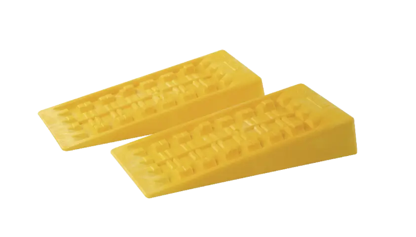 Praktische set level blokken met een zelfblokkerend systeem voor het plaatsen van het voertuig op de gewenste hoogte. Ideaal voor campers.