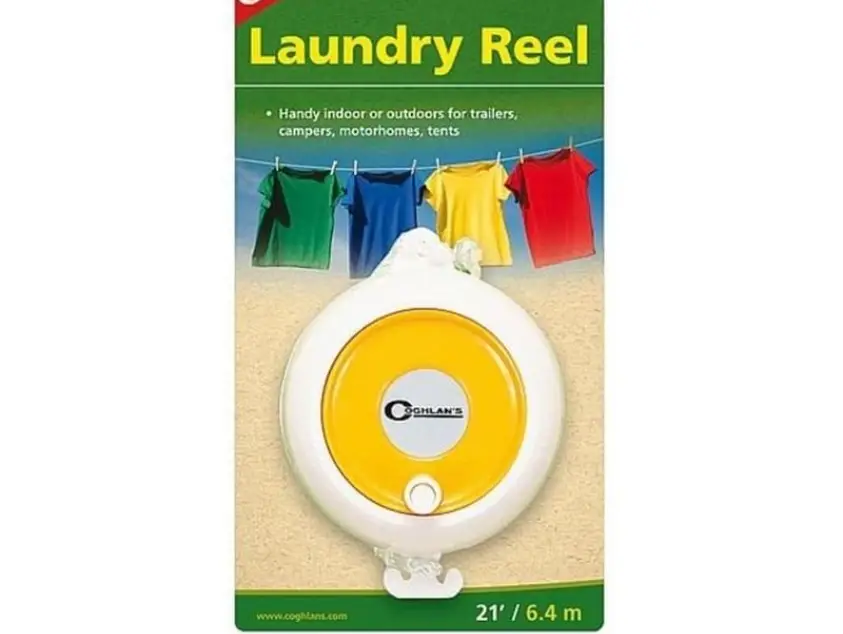 Waslijn in houder met een lengte van 6.4 meter, lijn zit opgerold in de houder en raakt daardoor niet in de knoop.